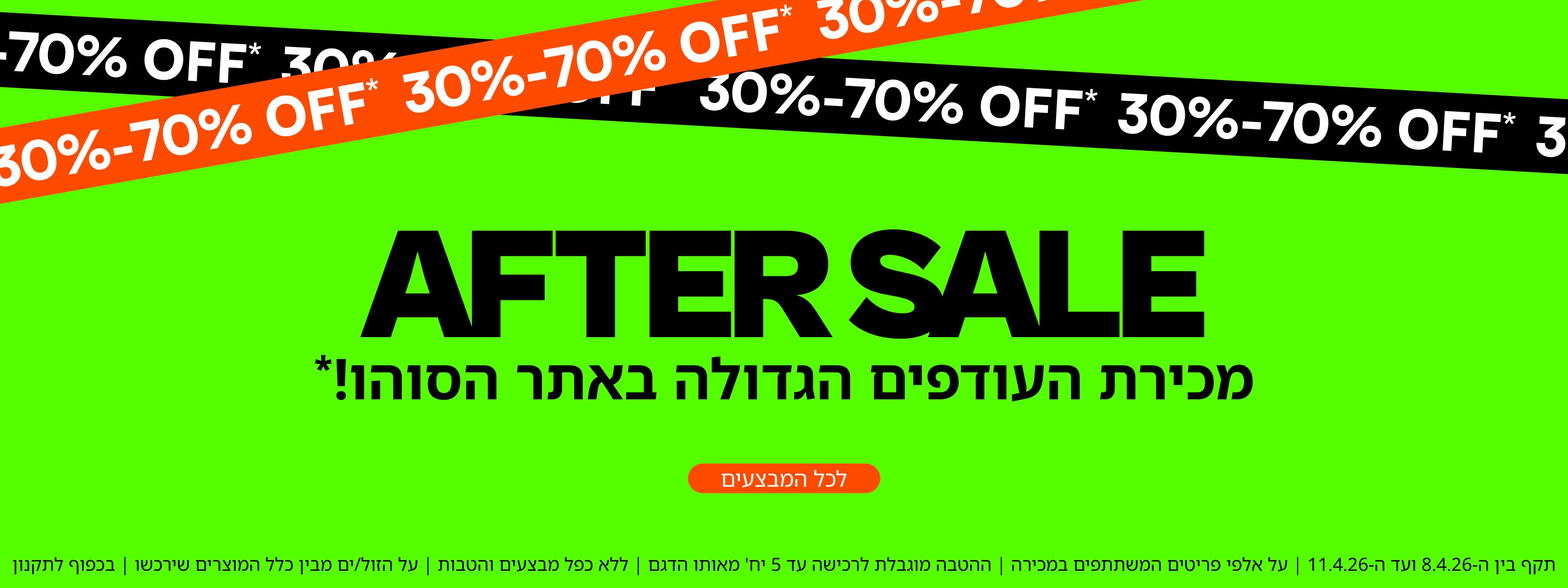אפטר סייל - 30% - 70% הנחה על אלפי מוצרים
