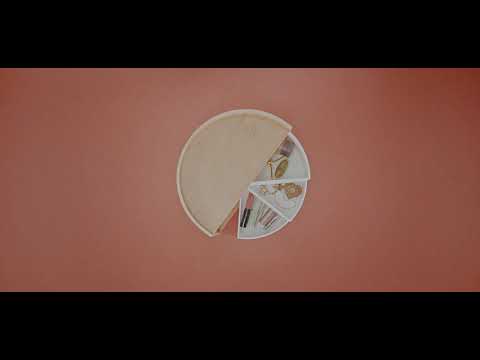 קופסת תכשיטים דקורטיבית ופונקציונלית, חלקה העליון של הקופסה משמש כמגש לאביזרים קטנים יותר, בושם, צמחים קטנים או פריטים אחרים. שלושת המגירות המסתובבות של הקופסה יכולות לספק שטח אחסון לתכשיטים, איפור, אביזרים ועוד.
