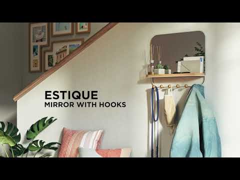 מראה בעלת אחסון משולב אשר תיתן לביתכם מגע דקורטיבי ומודרני. בשילוב עם המראה, קיים מדף עץ עליו תוכלו להניח טלפון, ארנק, מפתחות וגם עציצים קטנים ושישה ווים לתליית מעילים ותיקים. בזכות האחסון הפונקציונלי תוכלו לאחסן את חפציכם ליציאה מהבית בקלות ופשטות. השילוב המודרני של עץ ומתכת הופכים את המתלה לפתרון אחסון דקורטיבי שייראה נהדר בכל חלל בביתכם או משרד. יכול להכיל עד 16 ק"ג.