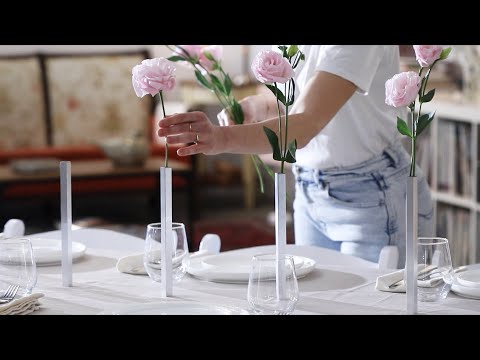 חמישה אגרטלים מגנטיים ייחודיים של המעצב הישראלי שחר פלג, היוצרים אשליה של ריחוף על השולחן.