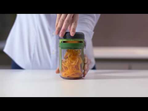 מתקן קומפקטי המכיל 3 סוגי להבים לחיתוכי ספירלות שונות של ירקות וגבינה: